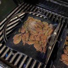 This non-stick grill mesh bag is so great! We bought it to use on our grill. Instead (for now!) we use these in our oven to roast veggies, and they work great! Nothing falls through, and the veggies roast evenly, without needing to be turned much since the bag has the tiny mesh holes. This is sturdy, well made, and my favorite part, dishwasher safe, and easy to clean!! I highly recommend!