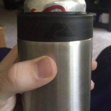 I really wanted a nice coozie for pounders... this one is "almost" perfect. Construction is sound, it keeps beverages cold, threaded cap looks like it will last. The only problem is that there is excess play laterally inside the coozie. I traced the opening and cut a piece of cardboard to fit. Problem solved with a little leg work.